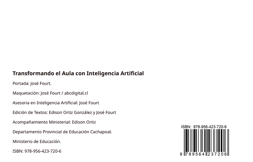 Después de asesorar a los docentes de la provincia de Cachapoal, para implementar la IA al aula de clases, diseñé y maqueté un libro con toda la experiencia adquirida en el proyecto. Las imágenes son del lanzamiento del libro en donde di una charla explicando el proyecto y haciendo una proyección sobre los cambios que la IA podría producir en la educación.